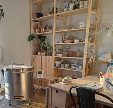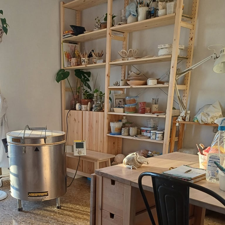 Mis clases regulares de cerámica son muy especiales. Abro la puerta de mi hogar —un espacio íntimo, acogedor y tranquilo— para que puedas explorar tu lenguaje creativo con calma y confianza.